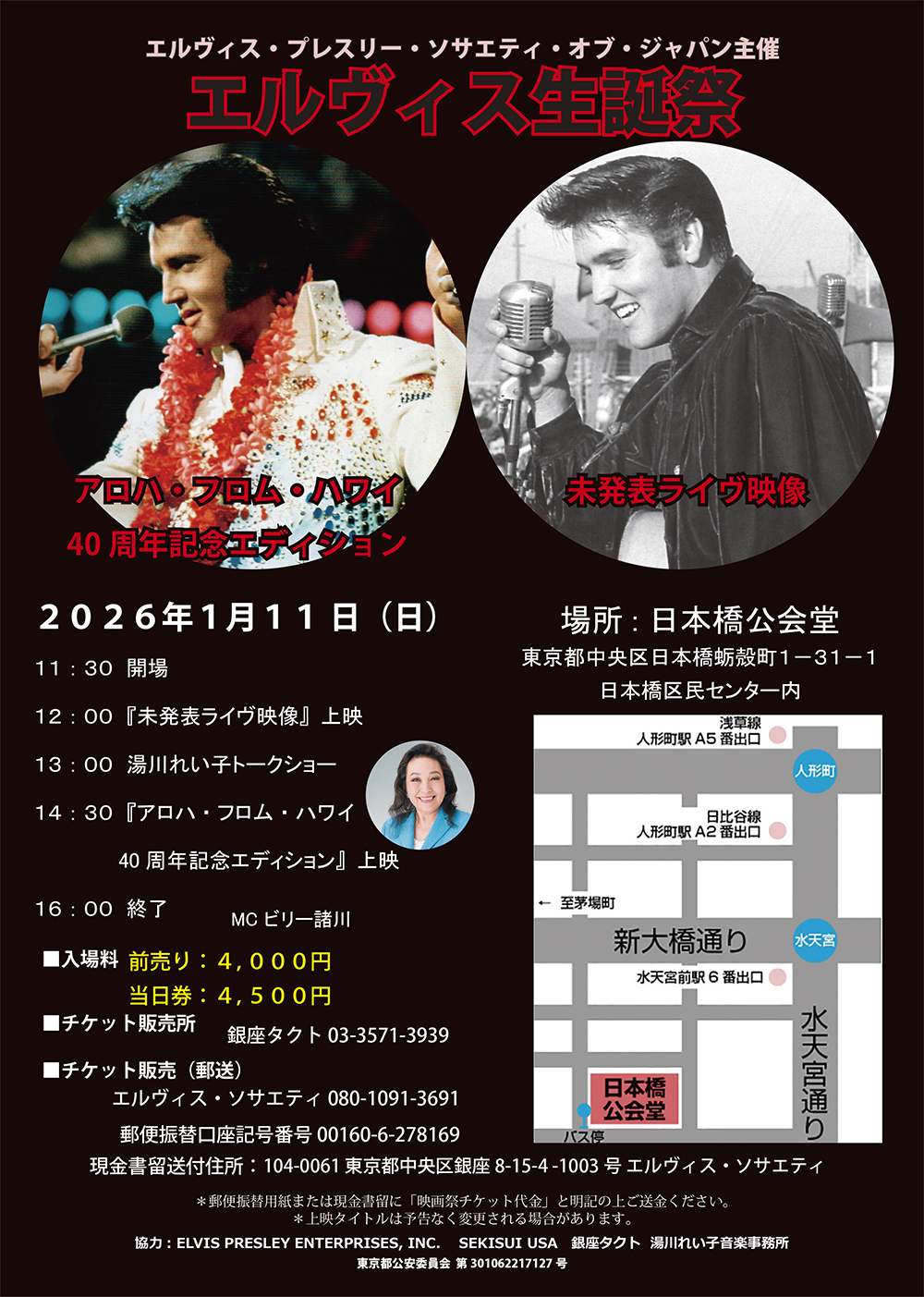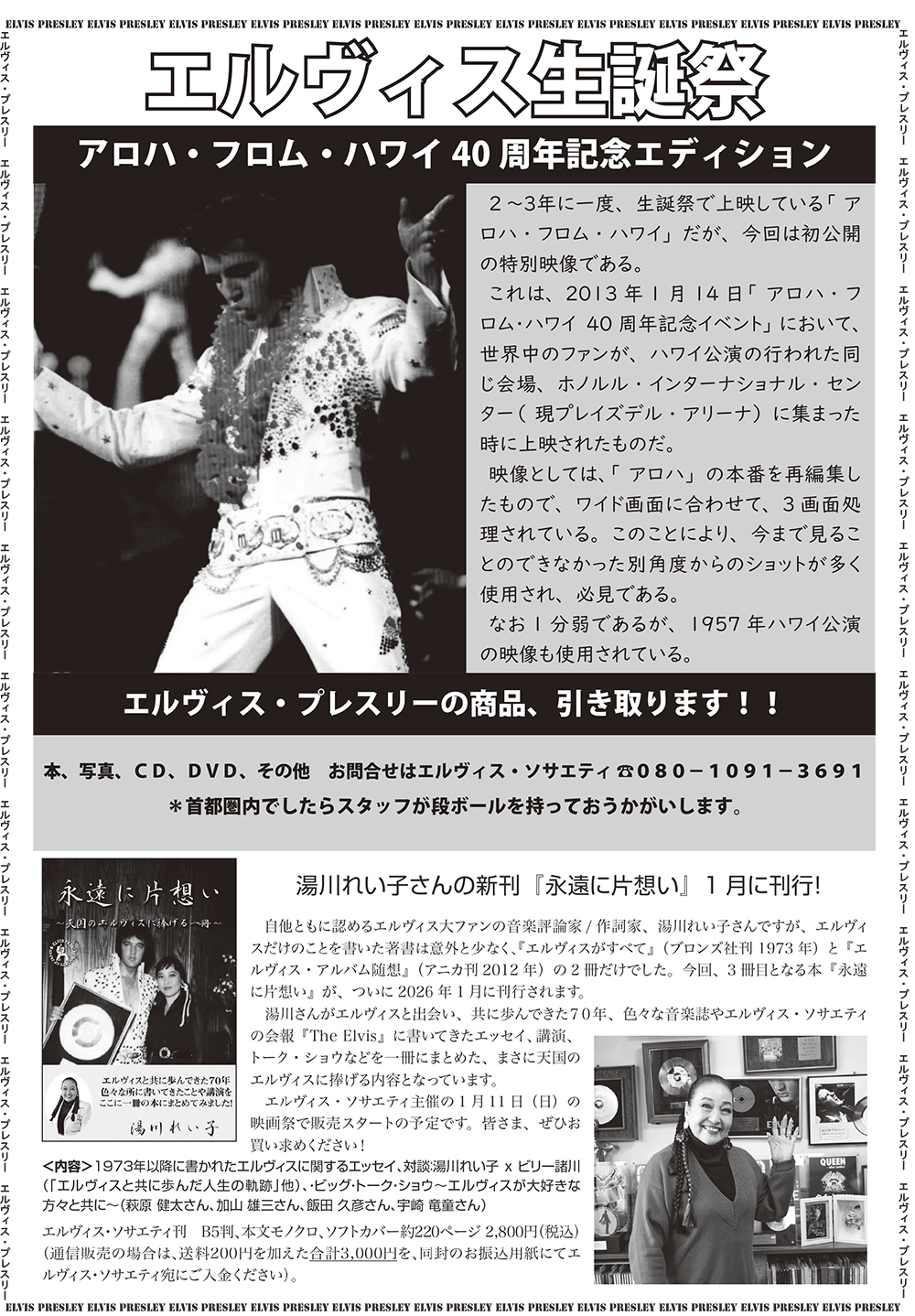 ▼画面をクリックして下さい。紹介動画が流れます▼ お申し込みは 現金書留にて、以下の住所に ¥9000(送料込み)送金ください。 〒104-0061 東京都中央区銀座8-15-4-1003 エルヴィスソサエティ 「ハワイ写真集係」 080-1091-3691